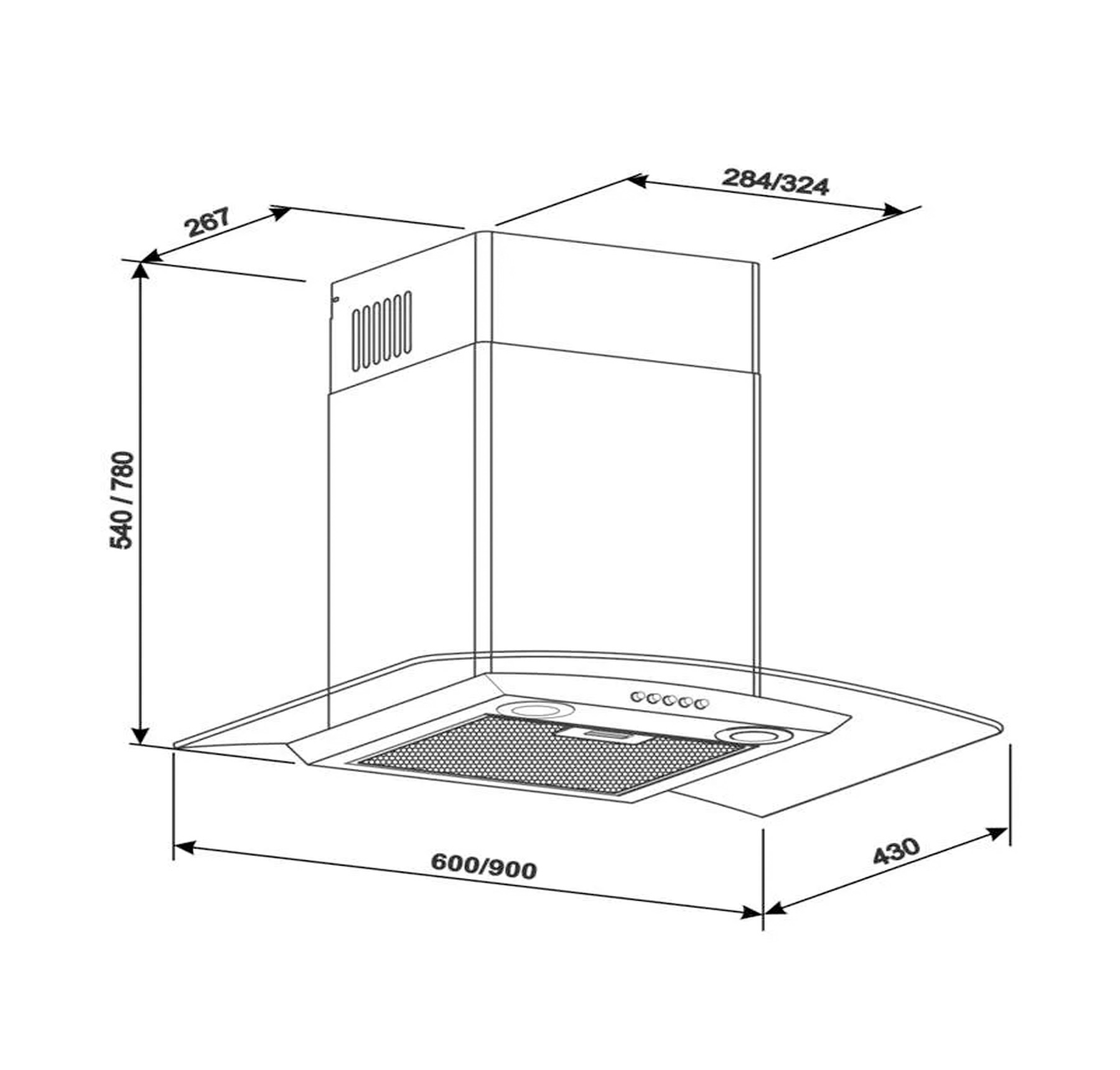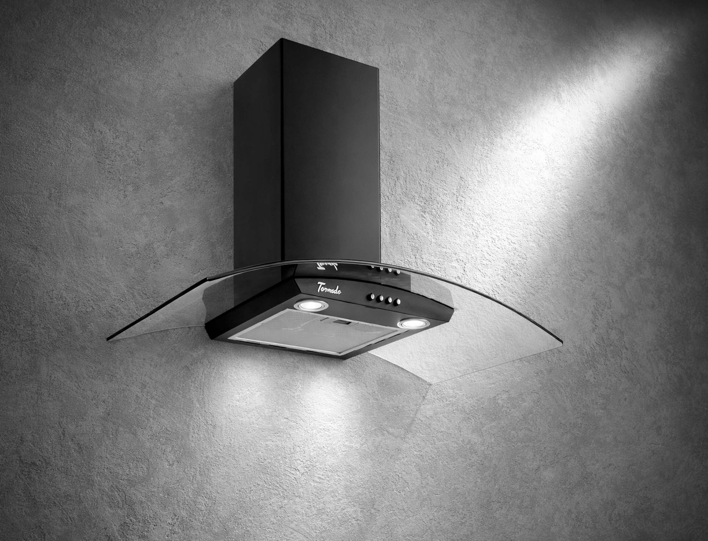 Купольная вытяжка Tornado EVA 1200(90) BL LED с шириной корпуса 90 см производительностью турбины 1200 м3/час. Эта модель будет не только практичным помощником на кухне с площадью до 25 м.кв, но и прекрасно дополнит любой современный интерьер.