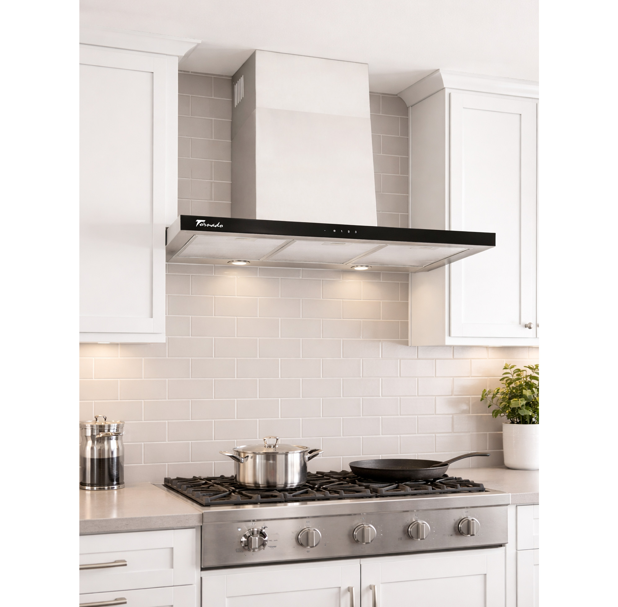 Пристенная вытяжка Tornado LARA 1200(90) IX-BL LED — Профессиональная мощь в эстетике High-Tech