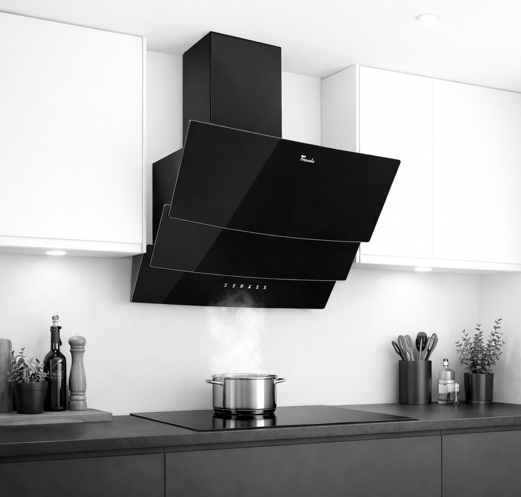 Hota se integrează perfect în interiorul unei bucătării moderne. Controlul se realizează prin panou tactil amplasat pe fațada frontală din sticlă sau cu ajutorul telecomenzii. Afișajul LCD indică treapta de viteză selectată și ora curentă. Modelul PIANO de la TORNADO aparține clasei de eficiență energetică D.